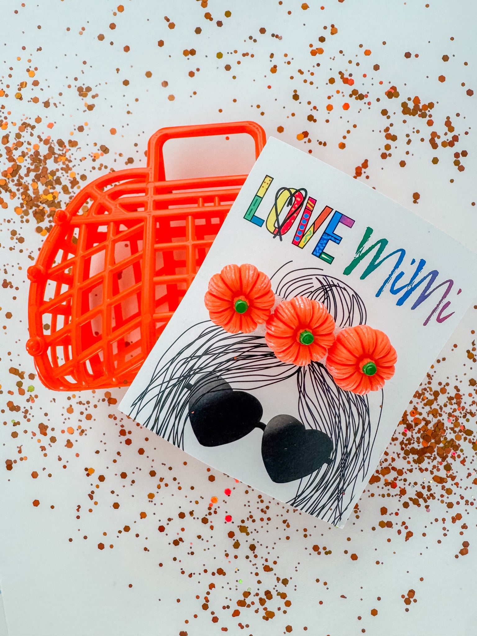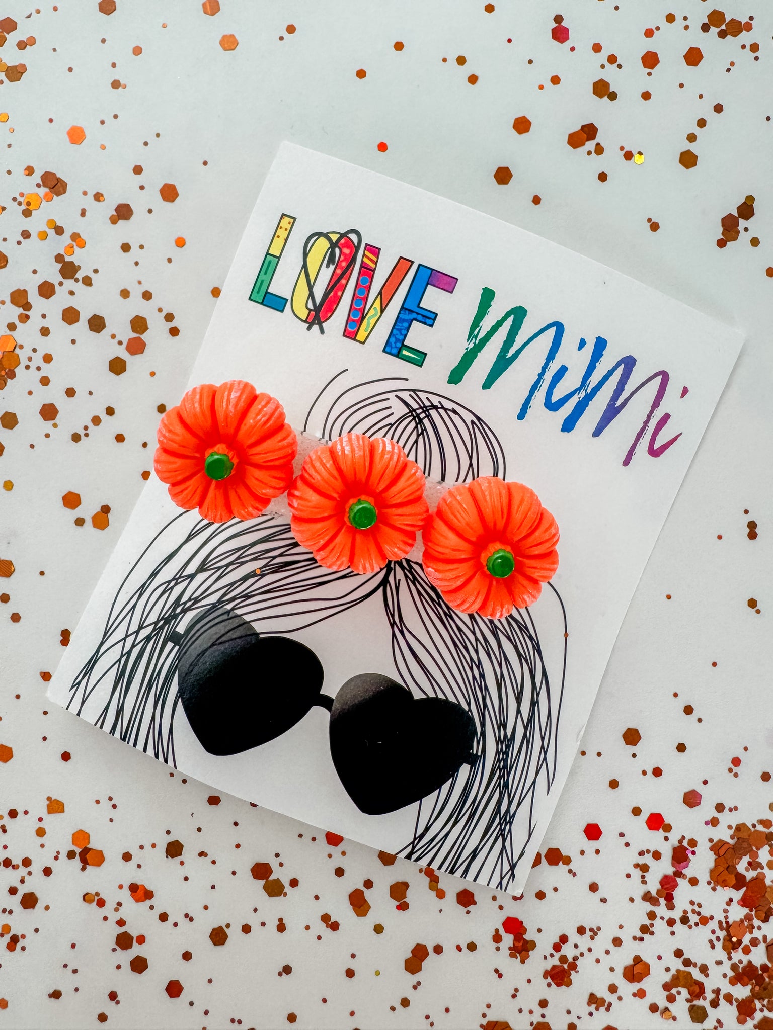 It's PUMPKIN SEASON and this clip will carry you through allllllll the fall-themed festivities!! 3 adorable pumpkin charms are attached to a white glitter resin base.