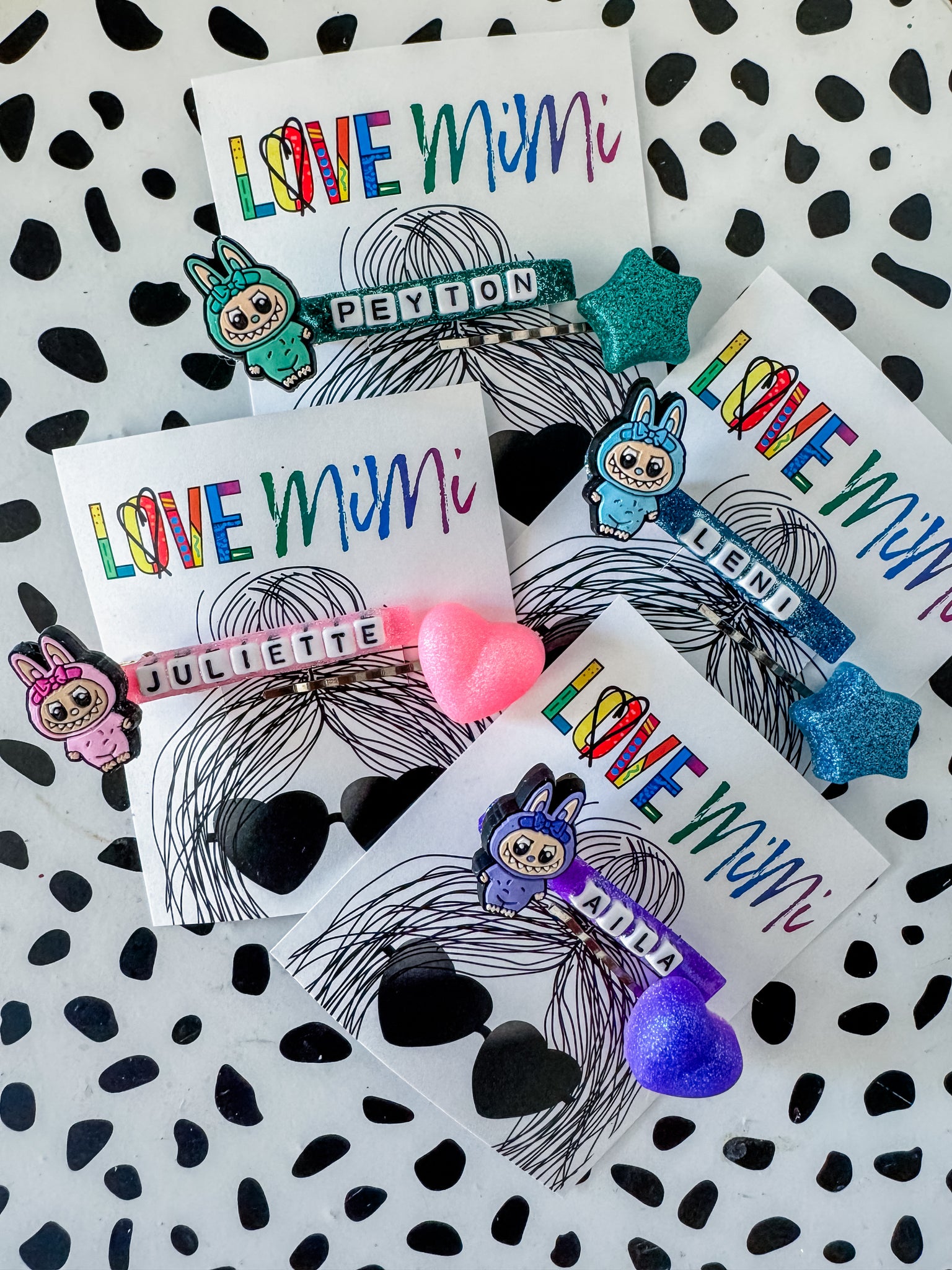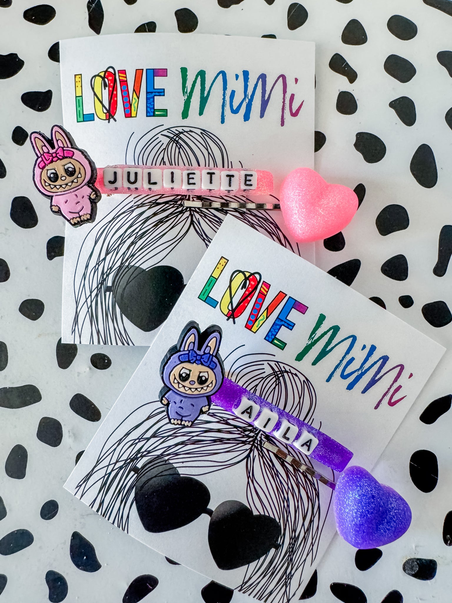 The cutest monsters make the cutest clips!! 4 fun color choices and an option to add a coordinating bobby pin to level up your Labubu styles!!