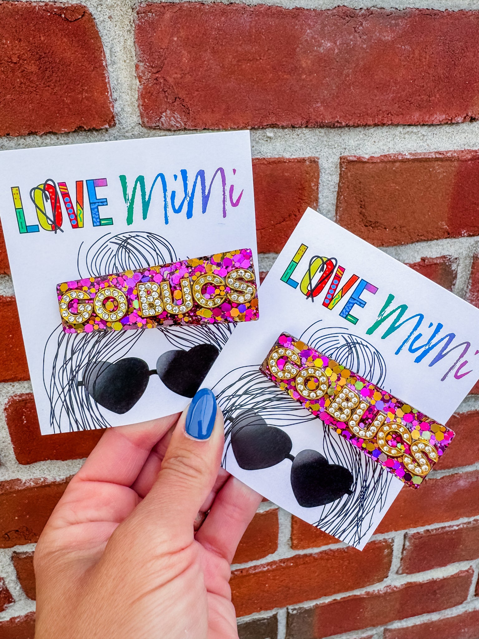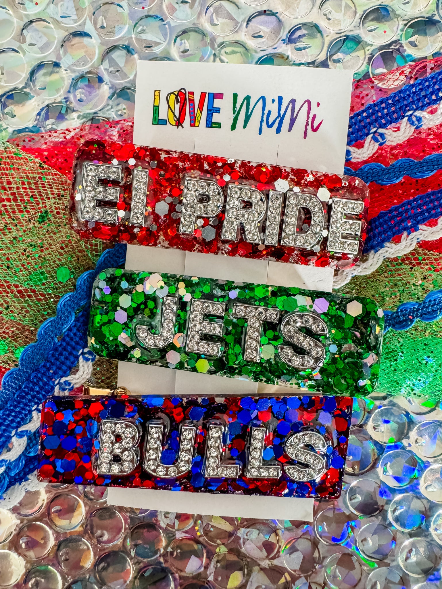 We’ve got spirit, yes we do! We’ve got spirit, how ‘bout you?! This team spirit clip is great for cheering on your home team! You can choose up to 3 chunky glitter colors to match your team colors and even have the option of adding a rhinestone paw print.